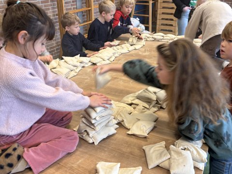 Onze dijkbeheerders Wijnand en Frank bezochten de Oranjeschool in Zalk. Zij vertelden de kinderen alles over dijken: welke dijken we hebben, waardoor ze kunnen doorbreken en hoe we ze versterken. Ook leerden de kinderen over bevers, die met hun lange gangen van wel twintig meter een risico kunnen vormen voor dijken. Samen oefenden ze met zandzakken en het bouwen van een nooddijk – een leerzame ervaring die laat zien hoe belangrijk samenwerking is bij waterveiligheid.